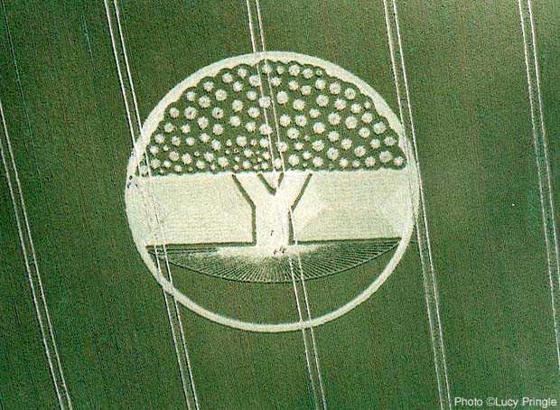 The following crop circle done in England the “Kings” Land in 2002 represents the “Tree of Knowledge” it has 94 fruit positions that correspond to what that brings you when you turn it upside down. A full-blown mushroom cloud we are looking at the fall and destruction of man. 94 is the atomic number for “PLUTONIUM.”