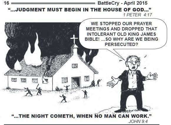 Battle Cry is a publication produced by a great man who won many souls to Christ; amazing how his appointed time called home points to it is a wise man who wins souls. Before you judge me, know that the KJV served us and built America setting countless souls free from the clutches of the priesthood. Without it, there would have never been prosperity so great in both England and America. Watch how God takes it away.