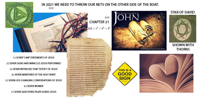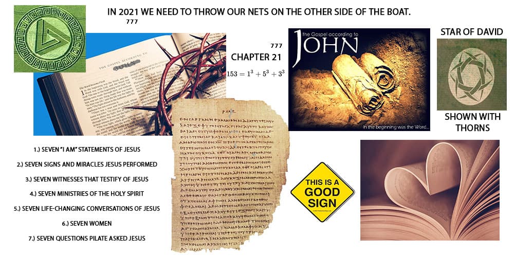 John by some remarkable coincidence has 21 Chapters in it breaking that up into God’s triune numbers is 777 2+1 = 3 for the Trinity and in Chapter 21 we have Peter being told to throw his nets on the other side of the boat where he catches 153 fish in Chapter 21. What year is this again? We need to start fishing on the other side of the boat? It May have something to do with intelligent design???