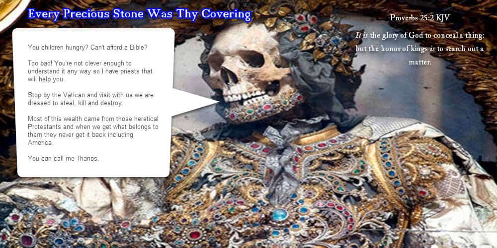 I told an AG minister that God had set aside that 700 billion that placed Obama in the White House for the Church to bring in the harvest and he barked, does God need money for revival? No more than he needed that covering cherub with all those precious stones it was to reveal the value Father placed on HIS SON.