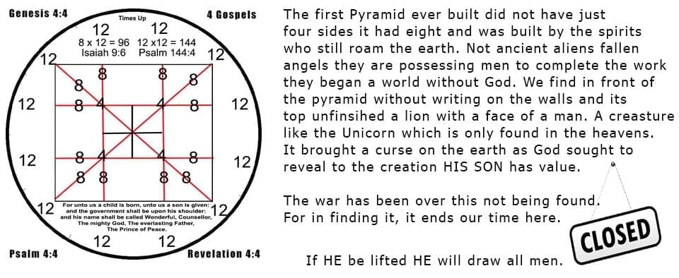 | Curious Georges was a Jesuit trained Belgian Catholic priest, mathematician, astronomer, and professor of physics at the Catholic University of Louvain. He was the first to identify that the recession of nearby galaxies can be explained by a theory of an expanding universe, which was observationally confirmed soon afterward by Edwin Hubble. He was the first to derive what is now known as Hubble's law, or the Hubble–Lemaître law, and made the first estimation of what is now called the Hubble constant, which he published in 1927, two years before Hubble's article. Lemaître also proposed what later became known as the "Big Bang Theory" of the origin of the universe, initially calling it the "hypothesis of the primeval atom." ~ Information obtained from Wikipedia. The image below is called God spoke, and Bang it happened just as the Bible said it did. ![]() One year from the exact day this above crop circle arrived, the returned Arecibo message came. Carl Sagan sent the original (link opens he had an appointed time as well) God was watching them"What a waste of Money" HE must of though t all those children starving and science trying to deny HE exists. Want to communicate with intelligent life? Get on your knees and call out to Jesus HE will answer you if you sincerely seek HIM and its a free call. You can even call collect if you would like HE can afford it. The other intelligent life you may wish to communicate with is me Jesus was ancient of days and looked good for HIS age at 33 in human years. In spiritual years he had no beginning and has no end HE is eternal. I have a beginning, and it was after the war took place in heaven that I was made alive, just like the rest of us were. | Georges Lemaître![]() 17 July 1894 - 20 June 1966 | Georges Henri Joseph Édouard Lemaître Died 20 June 1966 he was 71. 6+20+19+66+71 = 182 Minus the 150 Psalms leaves us with 32 Minus the Proverbs brings us to Ecclesiastes 1:1-18 KJV (1) The words of the Preacher, the son of David, king in Jerusalem. (2) Vanity of vanities, saith the Preacher, vanity of vanities; all is vanity. (3) What profit hath a man of all his labor which he taketh under the sun? (4) One generation passeth away, and another generation cometh: but the earth abideth forever. (5) The sun also ariseth, and the sun goeth down, and hasteth to his place where he arose. (6) The wind goeth toward the south, and turneth about unto the north; it whirleth about continually, and the wind returneth again according to his circuits. (7) All the rivers run into the sea; yet the sea is not full; unto the place from whence the rivers come, thither they return again. (8) All things are full of labour; man cannot utter it: the eye is not satisfied with seeing, nor the ear filled with hearing. (9) The thing that hath been, it is that which shall be; and that which is done is that which shall be done: and there is no new thing under the sun. (10) Is there any thing whereof it may be said, See, this is new? it hath been already of old time, which was before us. (11) There is no remembrance of former things; neither shall there be any remembrance of things that are to come with those that shall come after. (12) I the Preacher was king over Israel in Jerusalem. (13) And I gave my heart to seek and search out by wisdom concerning all things that are done under heaven: this sore travail hath God given to the sons of man to be exercised therewith. (14) I have seen all the works that are done under the sun; and, behold, all is vanity and vexation of spirit. (15) That which is crooked cannot be made straight: and that which is wanting cannot be numbered. (16) I communed with mine own heart, saying, Lo, I am come to great estate, and have gotten more wisdom than all they that have been before me in Jerusalem: yea, my heart had great experience of wisdom and knowledge. (17) And I gave my heart to know wisdom, and to know madness and folly: I perceived that this also is vexation of spirit. (18) For in much wisdom is much grief: and he that increaseth knowledge increaseth sorrow. Let's subtract his age and go to the Psalm. God created the universe. Psalms 111:1-10 KJV (1) Praise ye the LORD. I will praise the LORD with my whole heart, in the assembly of the upright, and in the congregation. (2) The works of the LORD are great, sought out of all them that have pleasure therein. (3) His work is honourable and glorious: and his righteousness endureth for ever. (4) He hath made his wonderful works to be remembered: the LORD is gracious and full of compassion. (5) He hath given meat unto them that fear him: he will ever be mindful of his covenant. (6) He hath shewed his people the power of his works, that he may give them the heritage of the heathen. (7) The works of his hands are verity and judgment; all his commandments are sure. (8) They stand fast for ever and ever, and are done in truth and uprightness. (9) He sent redemption unto his people: he hath commanded his covenant for ever: holy, and reverend is his name. (10) The fear of the LORD is the beginning of wisdom: a good understanding has all they that do his commandments: his praise endureth for ever. The man's Birthdate gets Cosmological as well; he did not save many souls while alive he scattered more than he gathered condemning souls to hell does not look good on the judgment day. This is the way of Jesuits and their plebs. We will not let his life not glorify God as God desires. Psalm 136:1-26 Psalms 136:1-26 KJV (1) O give thanks unto the LORD; for he is good: for his mercy endureth for ever. (2) O give thanks unto the God of gods: for his mercy endureth for ever. (3) O give thanks to the Lord of lords: for his mercy endureth for ever. (4) To him who alone doeth great wonders: for his mercy endureth for ever. (5) To him that by wisdom made the heavens: for his mercy endureth for ever. (6) To him that stretched out the earth above the waters: for his mercy endureth for ever. (7) To him that made great ligh